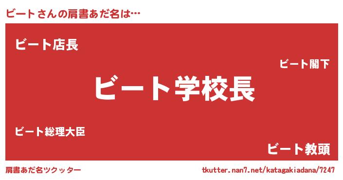 | ヘコむあだ名 | 『ビーにゅー』『ビート(爆)』 |