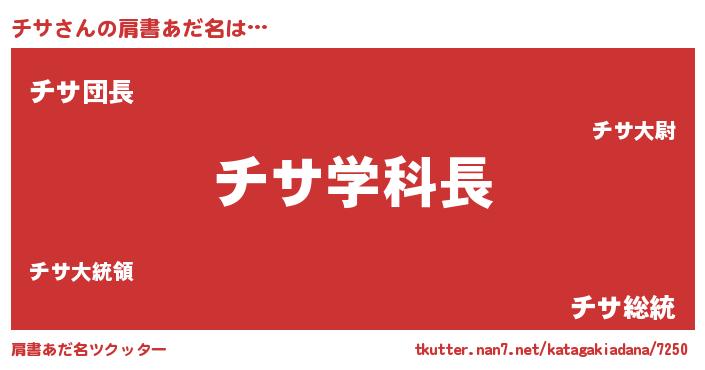 | ポケモン風あだ名 | 『チックウザ』『ヒチサ』『チサダネ』 |