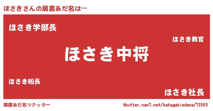 | 男性向けラノベタイトル風あだ名 | 『転生したらほさきだった件』 |