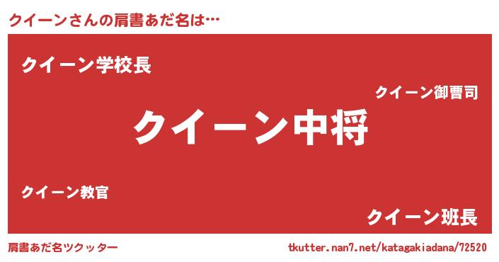 | ヒーロー風カッコイイあだ名 | 『慈愛の使者クイーン』『銀牙騎士クイ』 |
