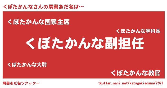 | 男性向けラノベタイトル風あだ名 | 『くぼたかんなという概念が存在しない退屈な世界 』 |