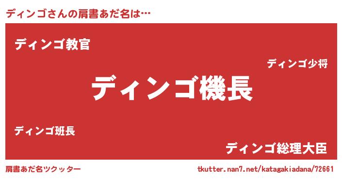 | 男性向けラノベタイトル風あだ名 | 『うちのディンゴが世界を掌握している!』 |