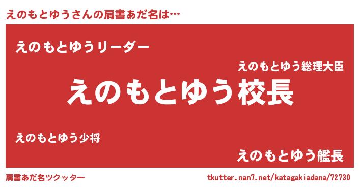 | 女子向けラノベタイトル風あだ名 | 『えのもとゆうの契約王妃』 |