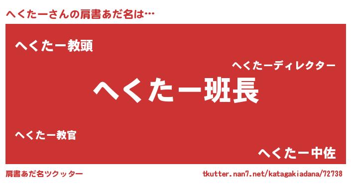 | 意味不明あだ名 | 『とにかく怪しいへくたー』 |