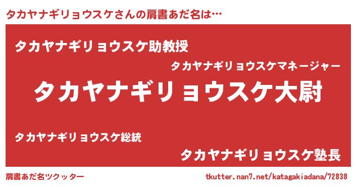 | 男性向けラノベタイトル風あだ名 | 『転生したらタカヤナギリョウスケだった件』 |