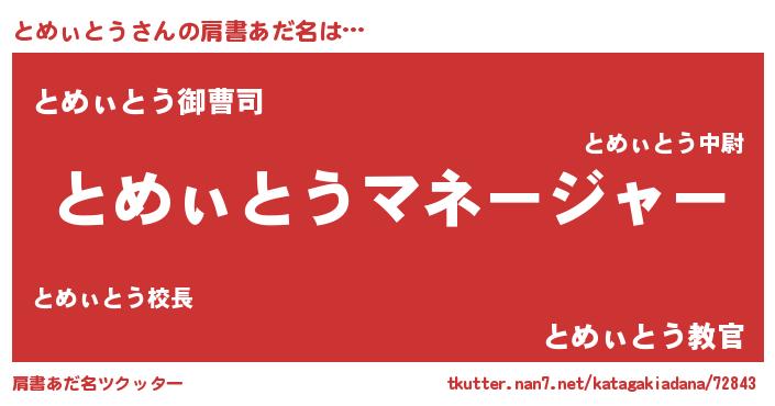 | ヘコむあだ名 | 『とめにー』『とめぃとう(遠い目)』 |