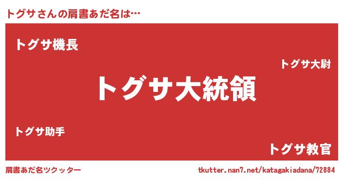 | ヒーロー風カッコイイあだ名 | 『ウルトラトグサマン』『仮面トグダー』 |