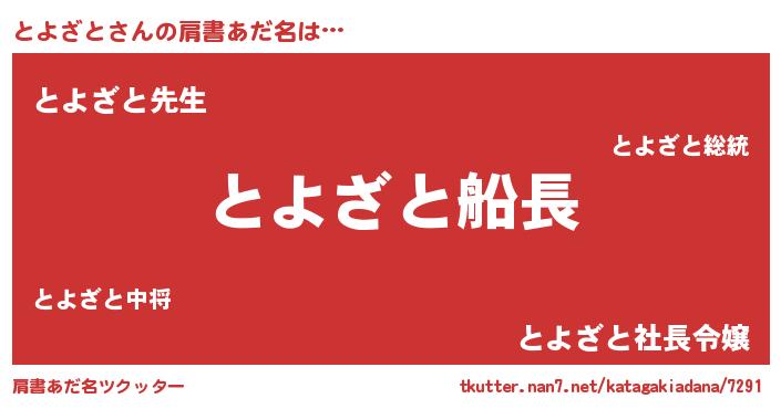 | 男性向けラノベタイトル風あだ名 | 『うちのとよざとが世界を掌握している!』 |