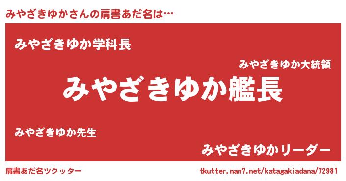| 女子向けラノベタイトル風あだ名 | 『シンデレラみやざきゆか家の靴箱館』 |