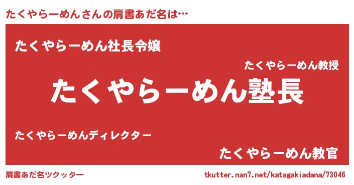 | ポケモン風あだ名 | 『ヒタクヤラーメン』『タクチュウ』 |