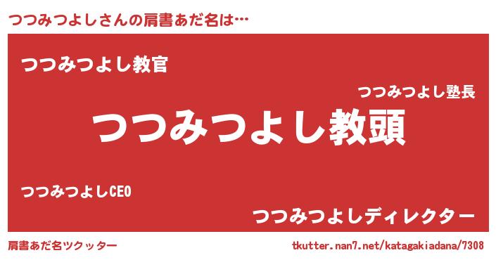 | 女子向けラノベタイトル風あだ名 | 『つつみつよしの契約王妃』 |