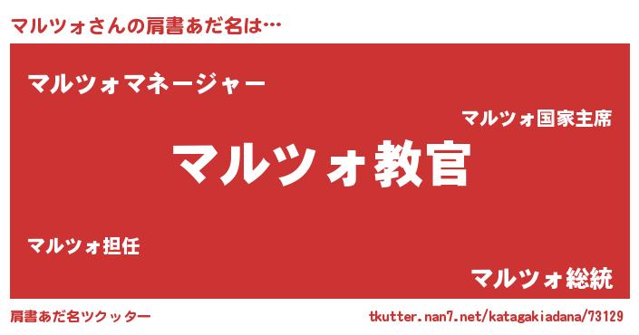 | 男性向けラノベタイトル風あだ名 | 『この素晴らしい世界にマルツォを!』 |