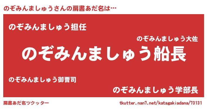| ヒーロー風カッコイイあだ名 | 『ネオノゾミンマシュウ』『魔戒騎士ノゾ』 |