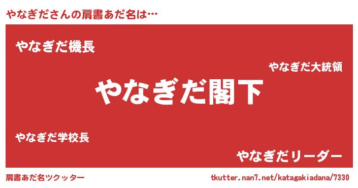 | 意味不明あだ名 | 『自称やなぎだ』『やなぎだフォーエバー』 |