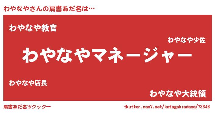 | 男性向けラノベタイトル風あだ名 | 『はたらくわやなやさま!』 |
