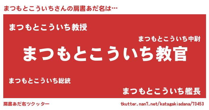 | 男性向けラノベタイトル風あだ名 | 『魔弾の王とまつもとこういち』 |