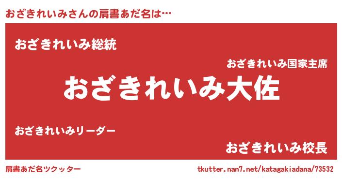 | 男性向けラノベタイトル風あだ名 | 『おざきれいみ~年齢イコール彼女いない歴の魔法使い~』 |