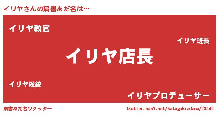 | 男性向けラノベタイトル風あだ名 | 『イリヤの憂鬱』『はたらくイリヤさま!』 |