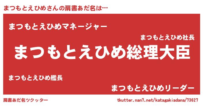 | 女子向けラノベタイトル風あだ名 | 『まつもとえひめ伯爵の花嫁』 |