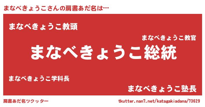 | 意味不明あだ名 | 『自称まなべきょうこ』 |