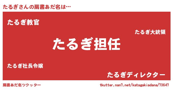 | 男性向けラノベタイトル風あだ名 | 『たるぎという概念が存在しない退屈な世界 』 |