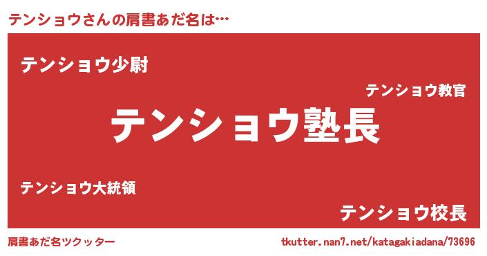 | 男性向けラノベタイトル風あだ名 | 『テンショウの嫁は女の子じゃないと思った?』 |