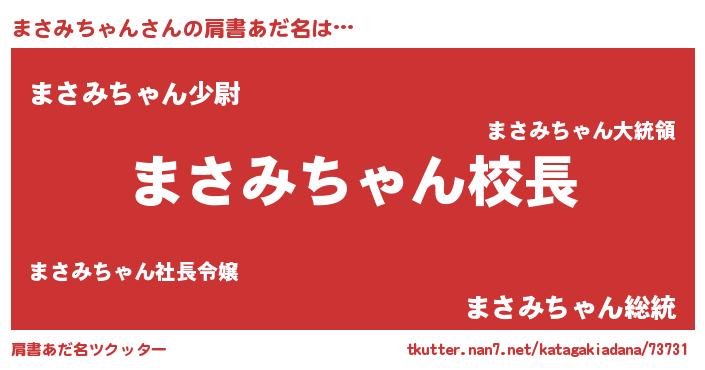 | 男性向けラノベタイトル風あだ名 | 『誰もが恐れるあのまさみちゃんが、ぼくの専属メイドになるようです。』 |