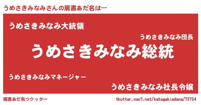 | 意味不明あだ名 | 『自称うめさきみなみ』 |