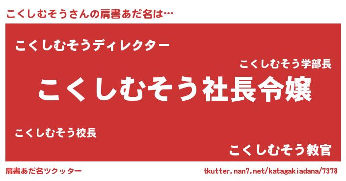 | 女子向けラノベタイトル風あだ名 | 『こくしむそう姫と円卓の騎士』 |