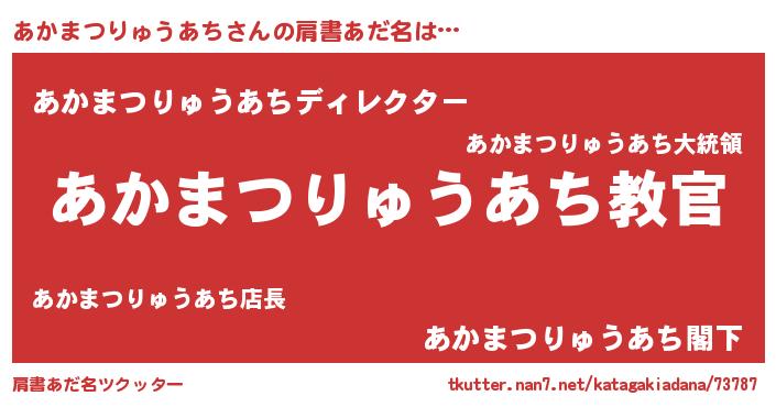 | 料理風あだ名 | 『あかまつりゅうあちのカルパッチョ風』 |