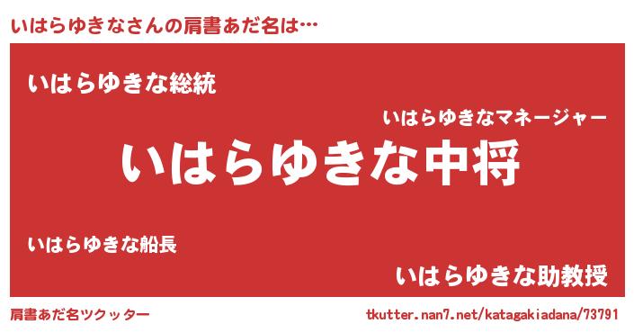 | 男性向けラノベタイトル風あだ名 | 『いはらゆきな~年齢イコール彼女いない歴の魔法使い~』 |