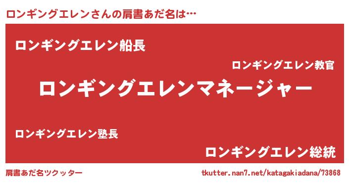 | 欧米人風あだ名 | 『アンジェラ・ロンギングエレン』 |