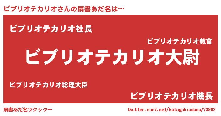 | 男性向けラノベタイトル風あだ名 | 『転生したらビブリオテカリオだった件』 |