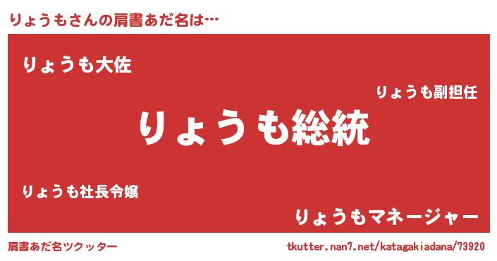 | 男性向けラノベタイトル風あだ名 | 『魔法科高校のりょうも』 |