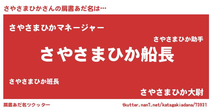| 男性向けラノベタイトル風あだ名 | 『うちのさやさまひかが世界を掌握している!』 |