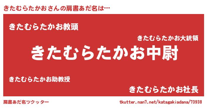 | 男性向けラノベタイトル風あだ名 | 『転生したらきたむらたかおだった件』 |