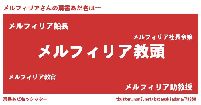 | ヘコむあだ名 | 『メルフィリア(笑)』『メルにー』 |