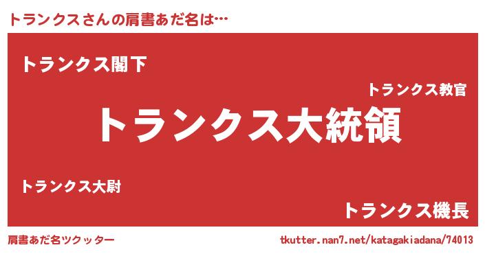 | ファンタジー風あだ名 | 『エターナルトランクスー』『ゼトラトゥ』 |