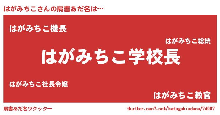 | 男性向けラノベタイトル風あだ名 | 『おまえをオタクにしてやるから、俺をはがみちこにしてくれ! 』 |