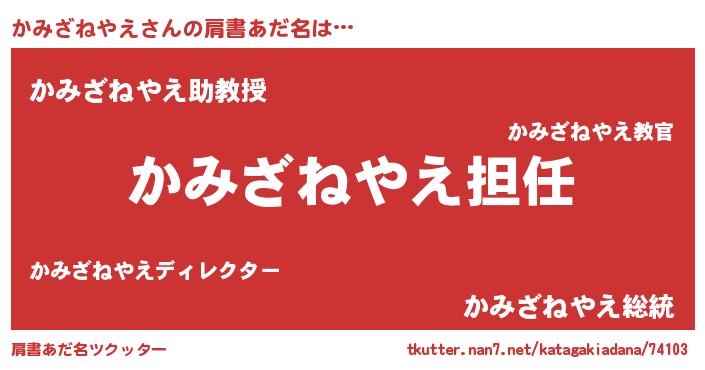 | 胡散臭い通販商品みたいなあだ名 | 『来世でも幸せになれる健康食品…その名も「かみざねやえ」』 |