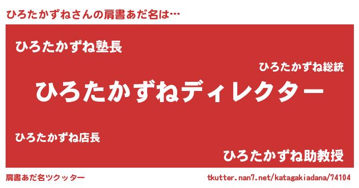 | 男性向けラノベタイトル風あだ名 | 『はたらくひろたかずねさま!』 |