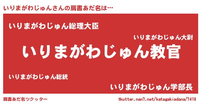 | 男性向けラノベタイトル風あだ名 | 『魔弾の王といりまがわじゅん』 |