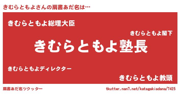 ポケモン風あだ名 | 『ヒキムラトモヨ』『キムラダネ』 |