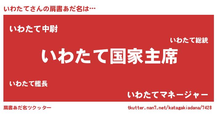 | 意味不明あだ名 | 『いわたてフォーエバー』『自称いわたて』 |