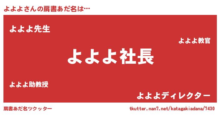| ファンタジー風あだ名 | 『ヨヨフェル』『ヨヨディッシュ』 |