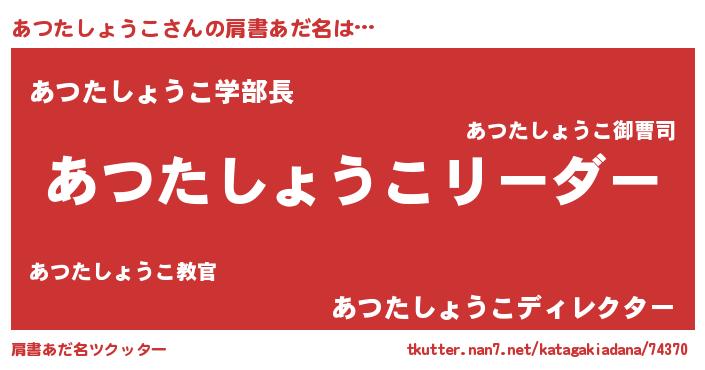 | 胡散臭い通販商品みたいなあだ名 | 『信頼と実績のペンダント…その名も「あつたしょうこ」』 |