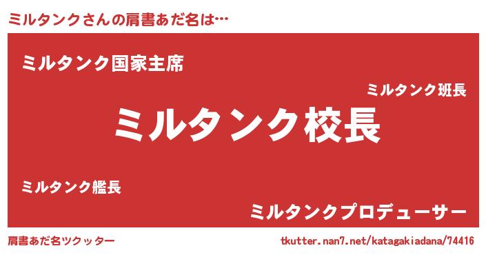| ヒーロー風カッコイイあだ名 | 『ネオミルタンク』『炎刃騎士ミル』 |