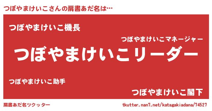 | 男性向けラノベタイトル風あだ名 | 『つぼやまけいこの嫁は女の子じゃないと思った?』 |