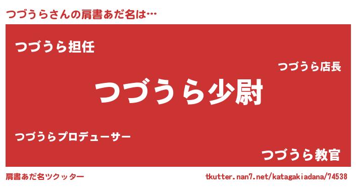 | 男性向けラノベタイトル風あだ名 | 『転生したらつづうらだった件』 |