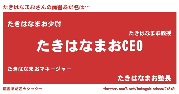 | 男性向けラノベタイトル風あだ名 | 『たきはなまおの憂鬱』 |